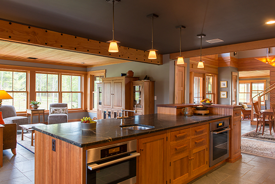 In this Bow, NH new build we blended contemporary craftsman exterior styles, with an interior heavily custom built with natural wood finished with antique oils and wood preservatives.